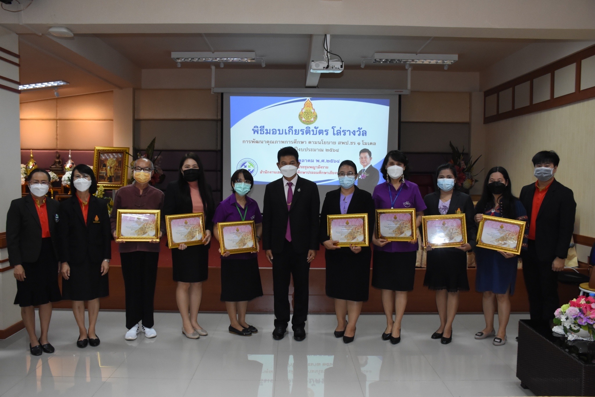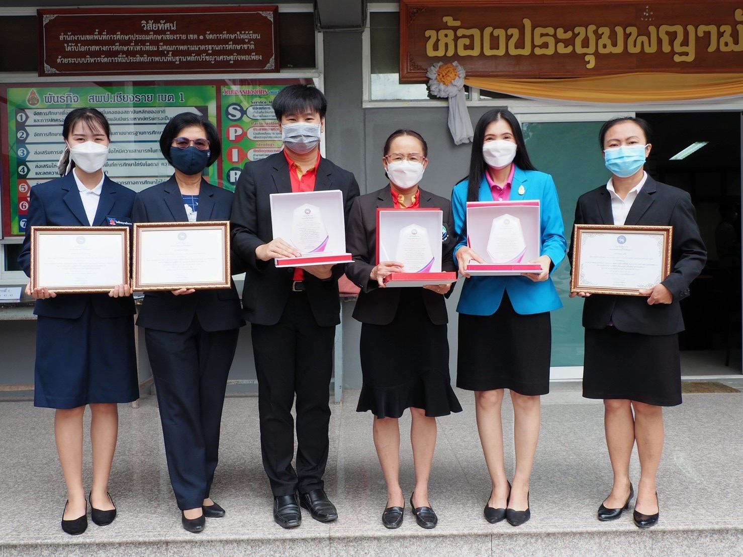 ในวันที่ 25 - 26 กันยายน 2564 ที่ผ่านมา ซึ่ง นายบูรชาติ ศิริเป็ง ศึกษานิเทศก์ชำนาญการพิเศษ และนางพิมพา ตามี่ ศึกษานิเทศก์ชำนาญการพิเศษ ได้รับรางวัลชนะเลิศเหรียญทองระดับจังหวัดเชียงราย และได้เข้ารับโล่รางวัลจากผู้อำนวยการสำนักงานเขตพื้นที่การศึกษาประถมศึกษาเชียงราย เขต 1 เมื่อวันที่ 16 กันยายน 2564 ณ ห้องประชุมพญามังราย สำนักงานเขตพื้นที่การศึกษาประถมศึกษาเชียงราย เขต 1 ที่ผ่านมา